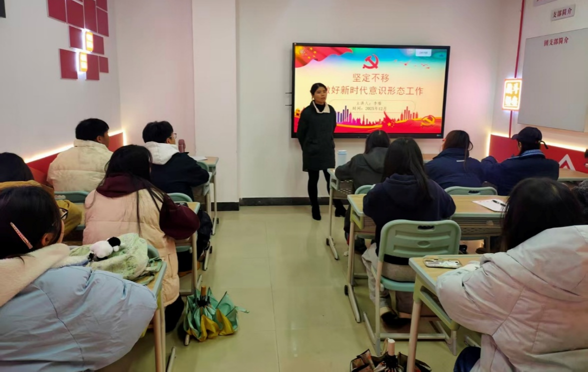 为深入学习贯彻党的二十届四中全会精神,加强高校意识形态工作,筑牢入党积极分子思想根基,强化党的创新理论入脑入心,2025年12月2日中午理学院组织员、教师党支部书记在“一站式”社区-知行社区讲授题为“坚定不移做好新时代意识形态工作”党课,参加此次党课的为理学院学生党支部全体入党积极分子。