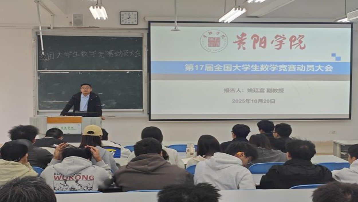 为激发学生参赛热情,明确备赛方向,夯实 “以赛促学、以赛育人” 的育人基础,贵阳学院理学院于2025年10月20日在贵阳学院三教召开第十七届全国大学生数学竞赛动员大会。由数学专业组和非数学专业组两个分会组成。第一分会在3288教室对数学专业组参赛学生进行鼓励动员;第二分会在3299教室对非数学专业组参赛学生进行动员。两个分会都由全国大学生数学竞赛优秀指导教师姚廷富副教授作开场报告。动员大会之后,竞赛组指导教师分别对两组参赛学生进行一系列的数学专业知识培训。