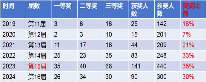 图3贵阳学院参加全国大学生数学竞赛初赛(省级)获奖比例