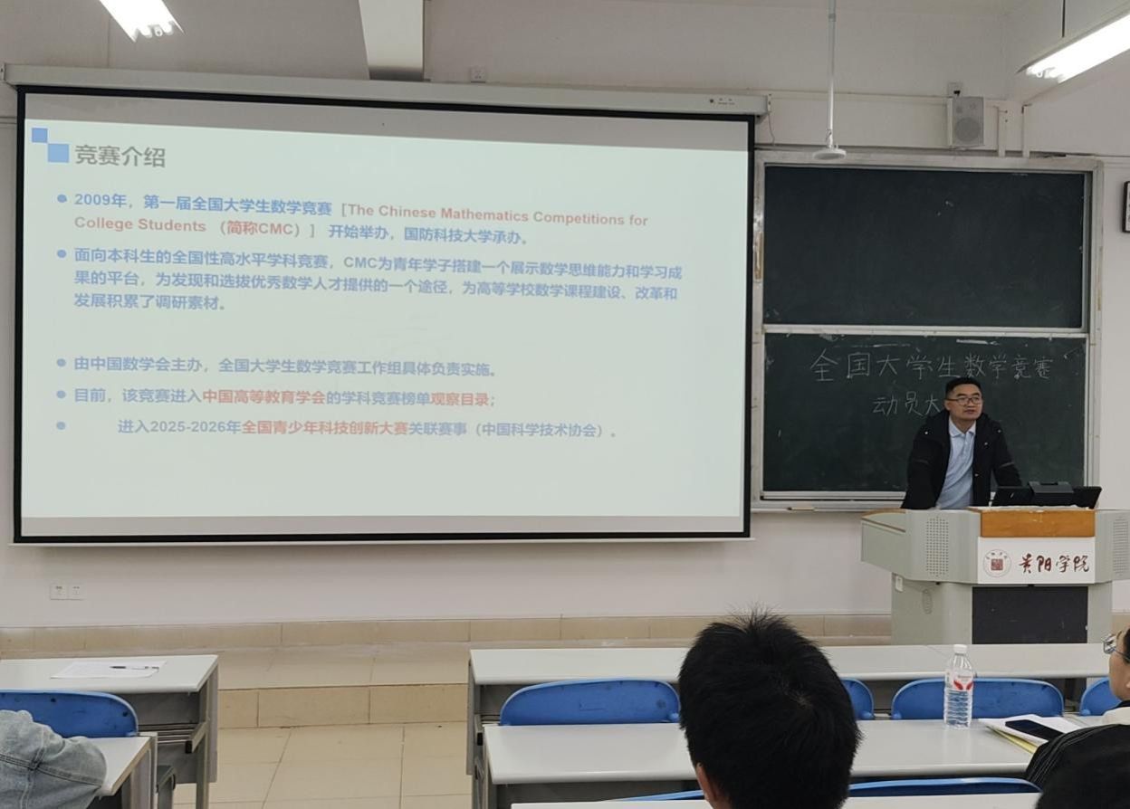 理学院姚老师首先对该竞赛进行介绍,其次简述贵阳学院参赛及获奖情况,随后分享励志案例等,强调参加此竞赛不仅能增强同学们