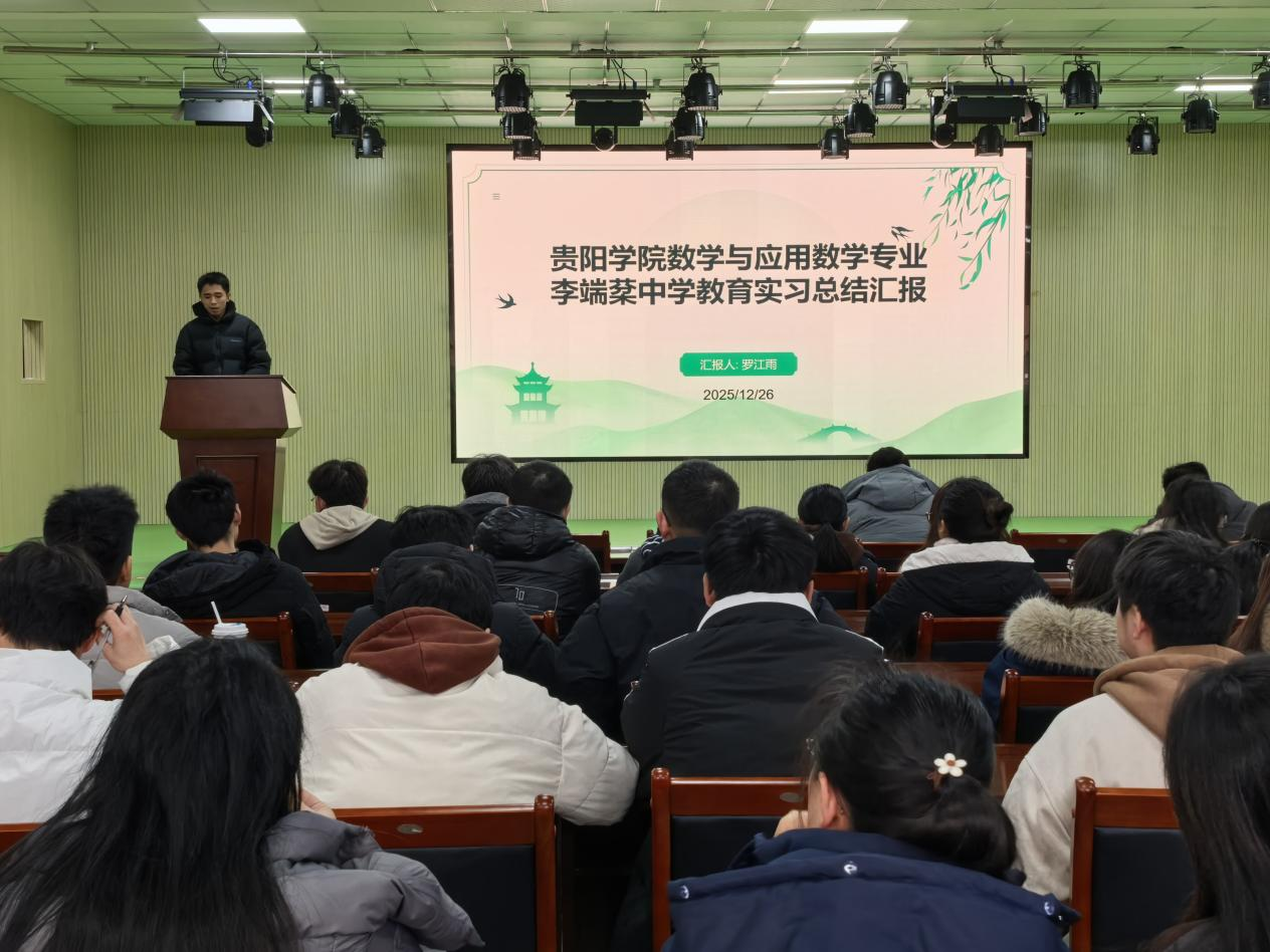 为全面总结教育实习经验,深化师范专业人才培养,促进不同年级学生间的交流与传承,贵阳学院理学院于2025年12月26日下午在理学院七楼多功能教室,成功举办了2022级数学师范专业秋季教育实习总结分享会。理学院副院长邹茜、实习指导老师及2022级、2023级数学与应用数学专业全体学生近150人参加了本次会议。